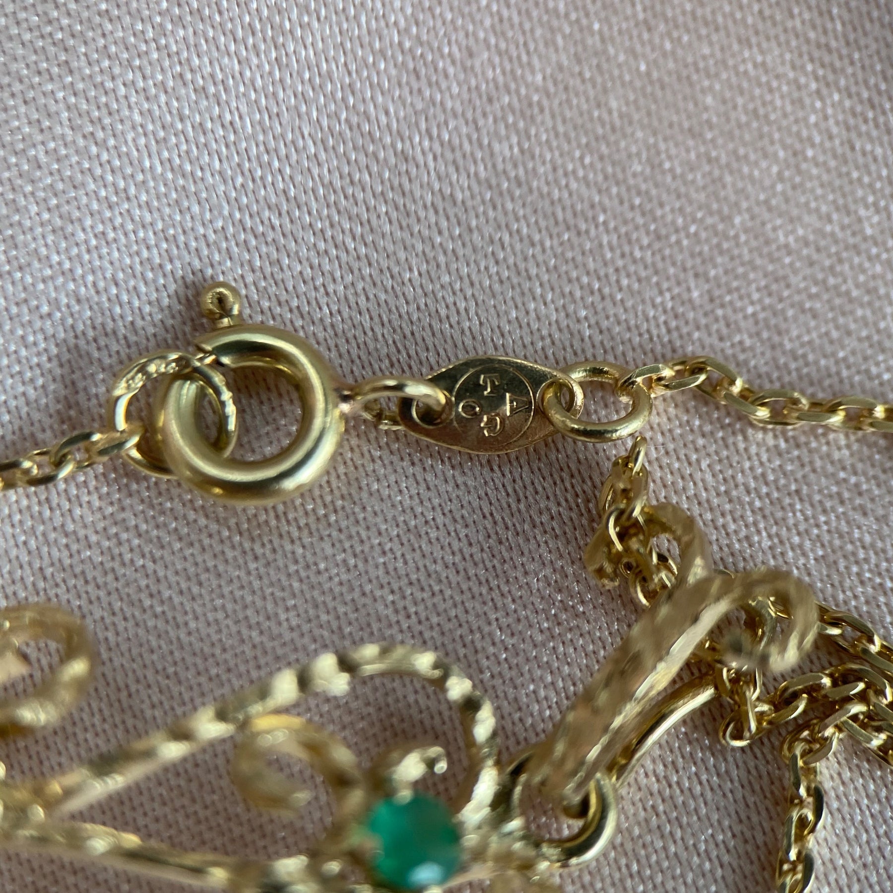Echtheitszertifikat und GLA-Gutachten für Gelbgold-Anhänger mit Chalcedon und Perlen, offizieller Schmucknachweis des Vintage-Stücks
