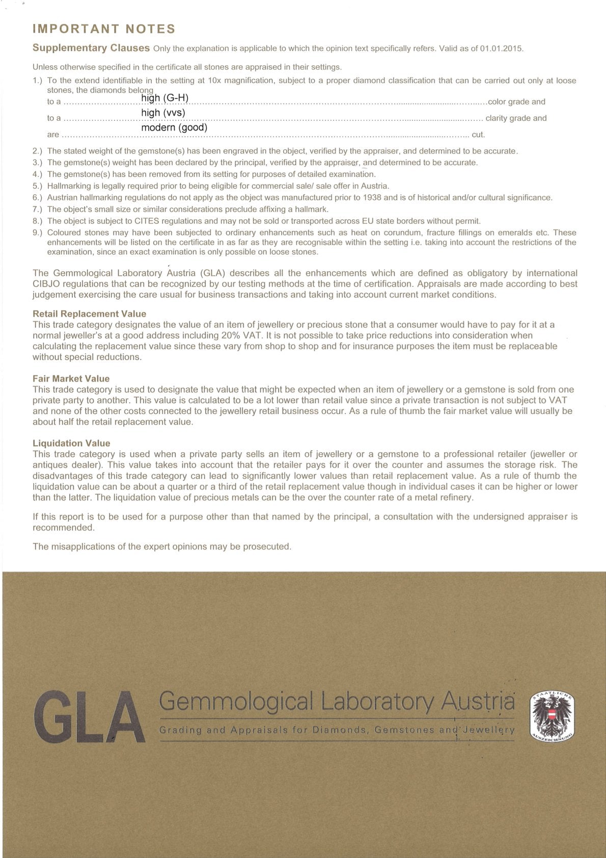 Dieses Schmuckstück wird inklusive GLA-Expertise als Echtheitszertifikat geliefert.