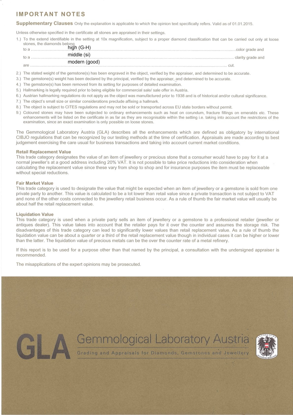 This piece of jewelry comes with a GLA certificate of authenticity.