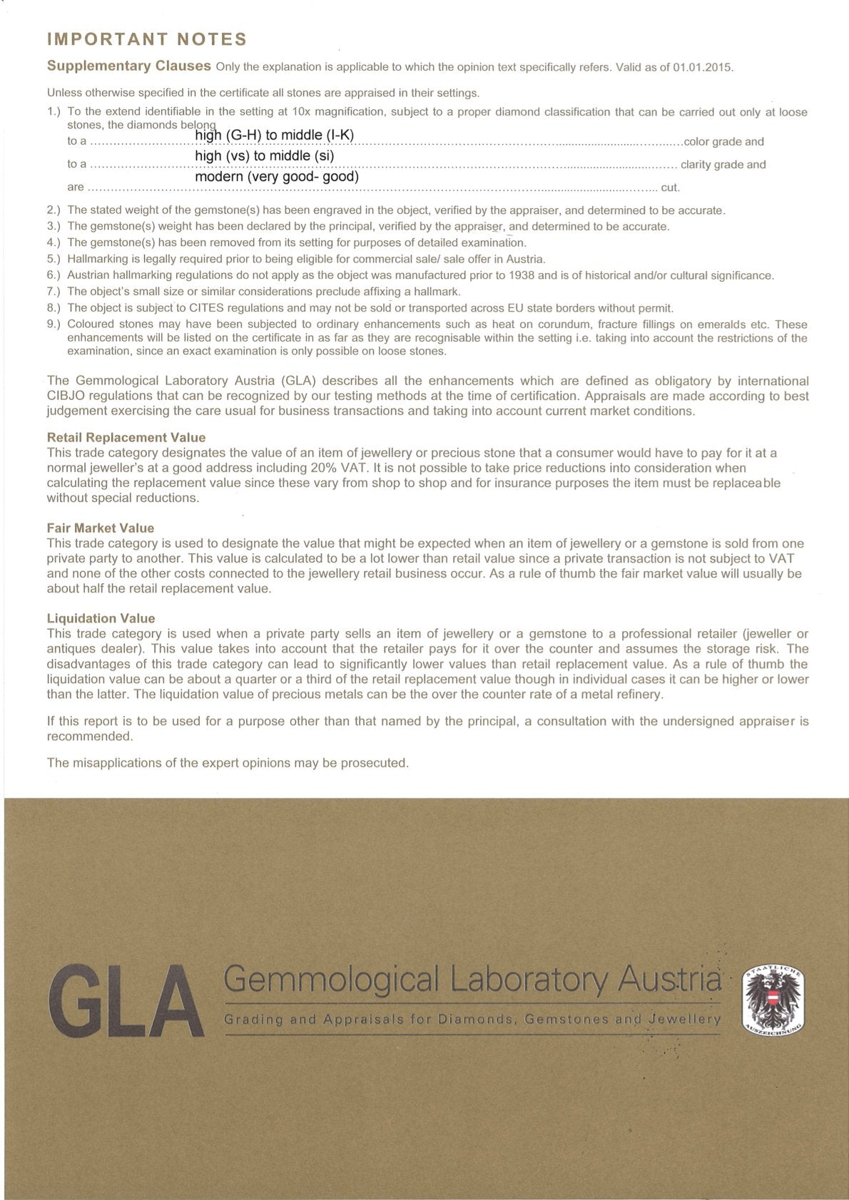 This piece of jewelry comes with a GLA certificate of authenticity.