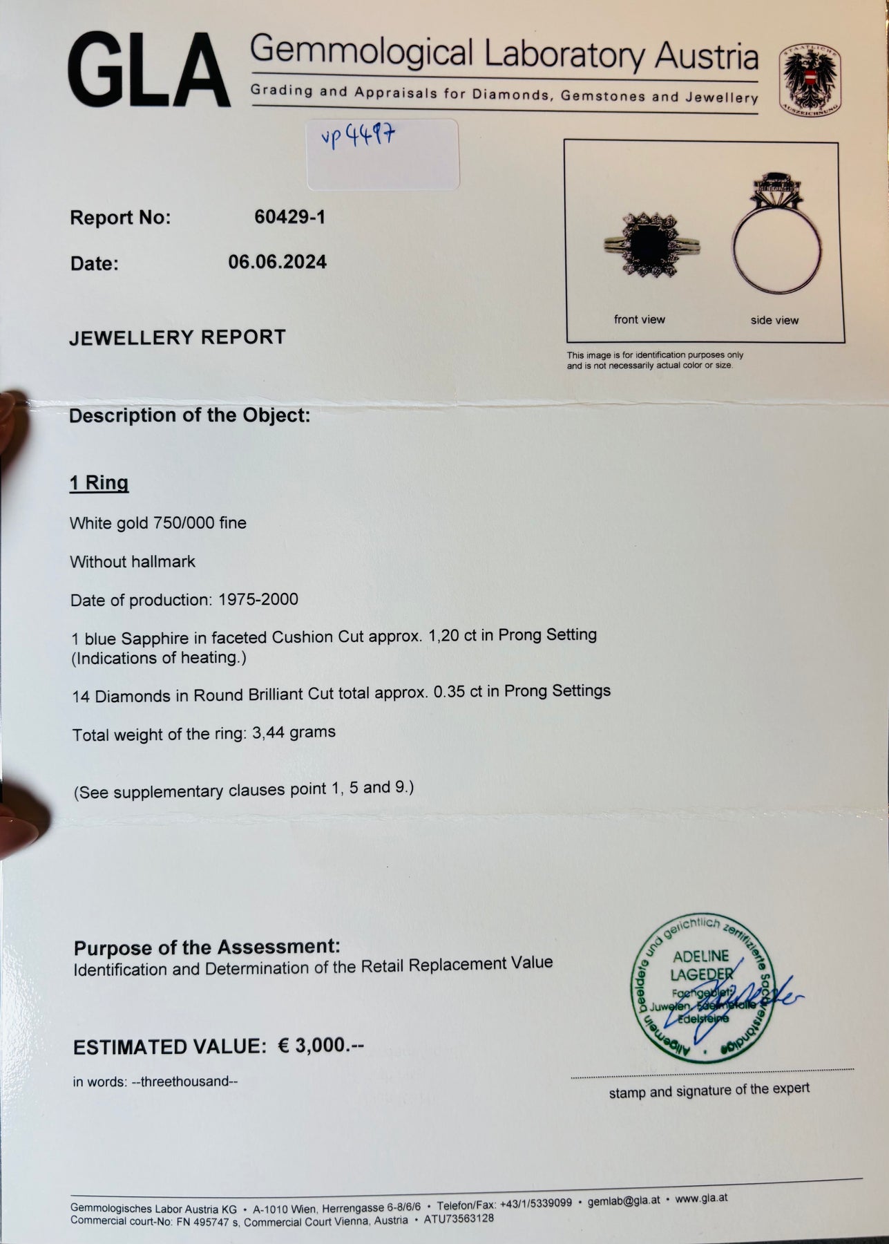 With a total weight of 3.44 grams, the ring is light and comfortable to wear. Its estimated value of €3,000 reflects the quality of the materials used and the artistic craftsmanship.