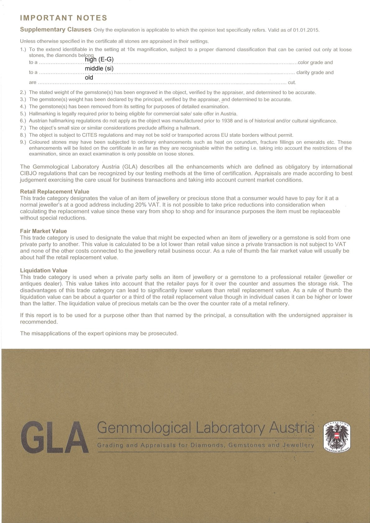 This piece of jewelry comes with a GLA certificate of authenticity.