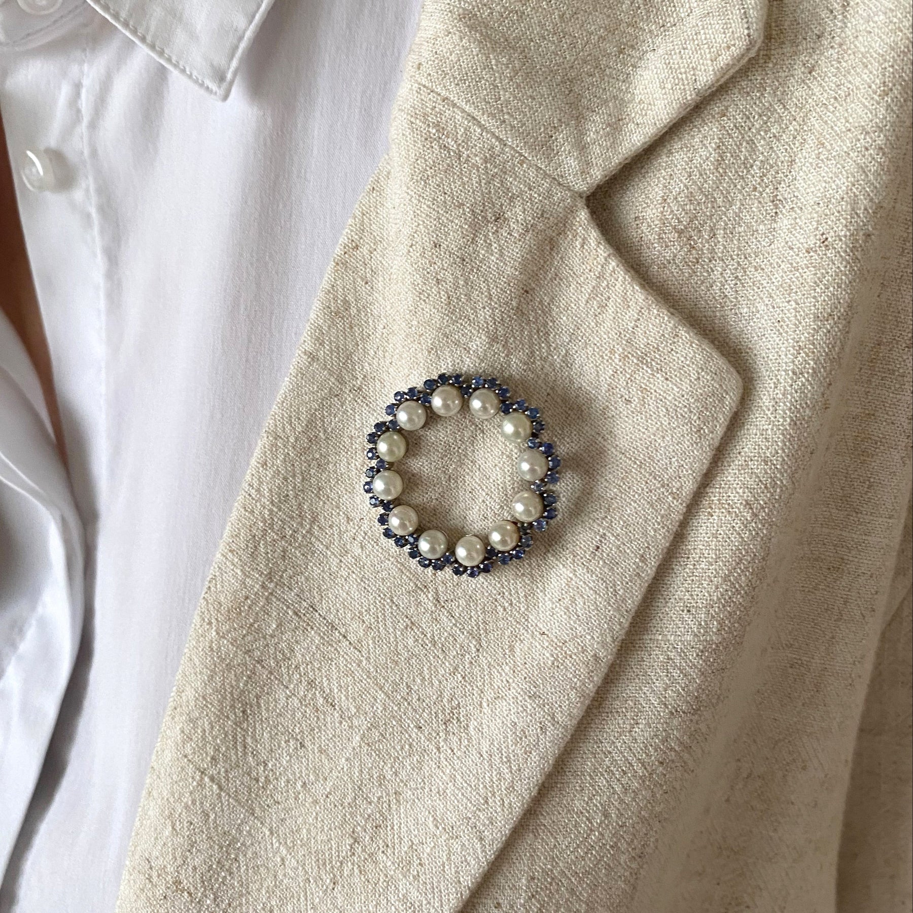 With its harmonious interplay of pearls, sapphires and high-quality white gold, this brooch is an elegant accessory for lovers of special jewelry – both wearable and collectible.