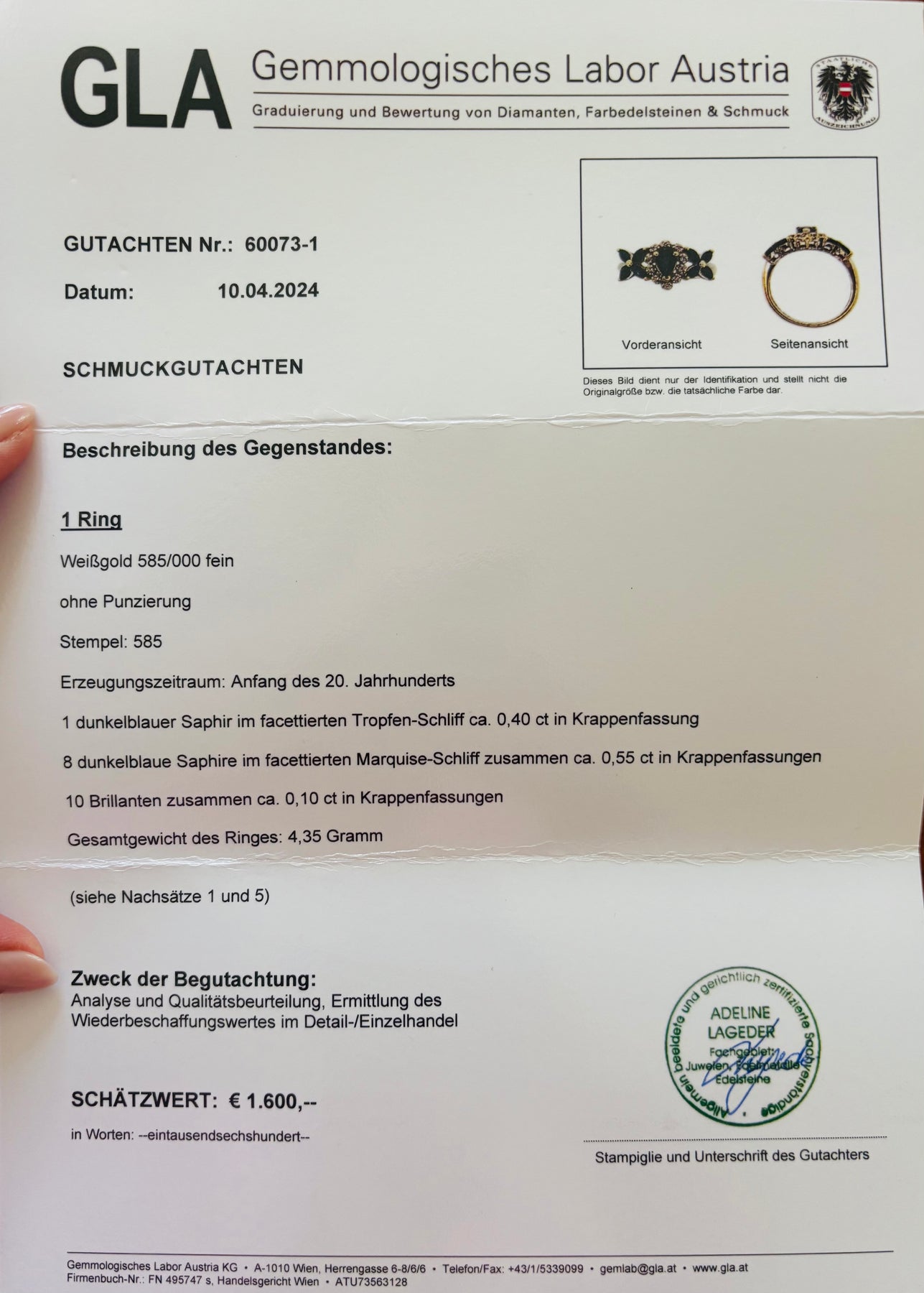 At Vintage Portfolio Treasury, we sell high-quality vintage jewelry steeped in history, elegance, and timeless charm. Unlike today's so-called mass-produced jewelry, this jewelry was not handcrafted by master craftsmen in the purest light. Each of our pieces is certified and appraised by the Austrian Gemmological Laboratory and accompanied by an official appraisal. We are proud to contribute to preserving the craftsmanship of the past while offering unique and ethically sourced jewelry.