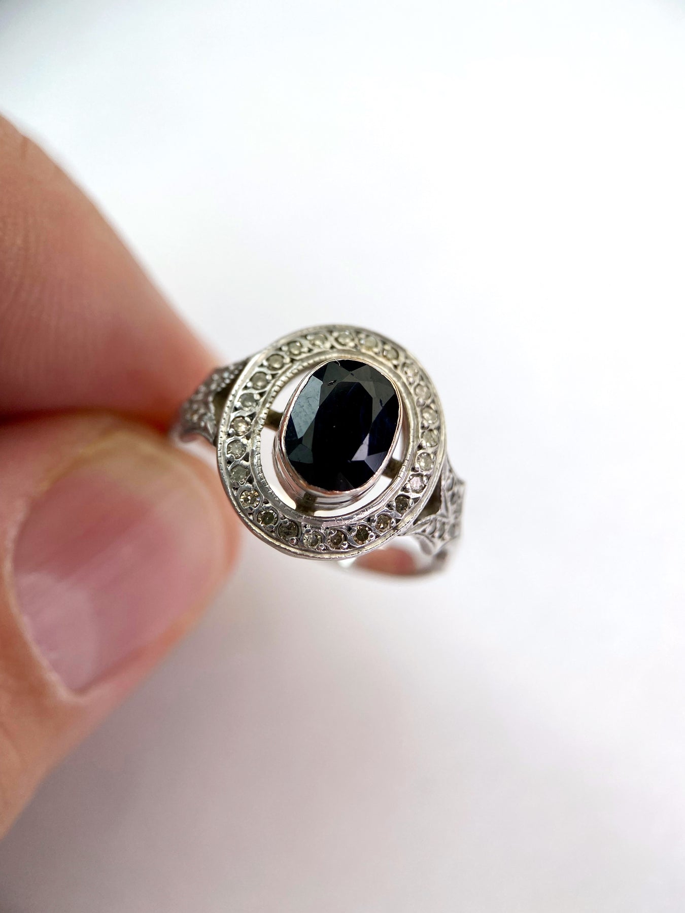 Dark blue 1.85 ct sapphire diamond ring: "Timeless shine"