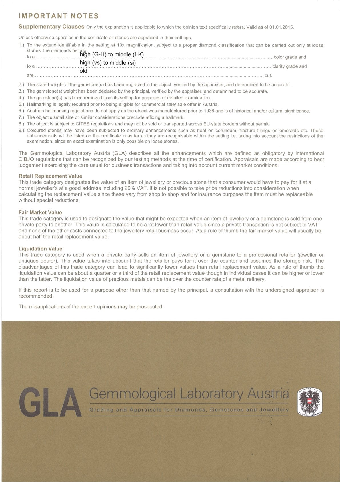 Dieses Schmuckstück wird inklusive GLA-Expertise als Echtheitszertifikat geliefert.